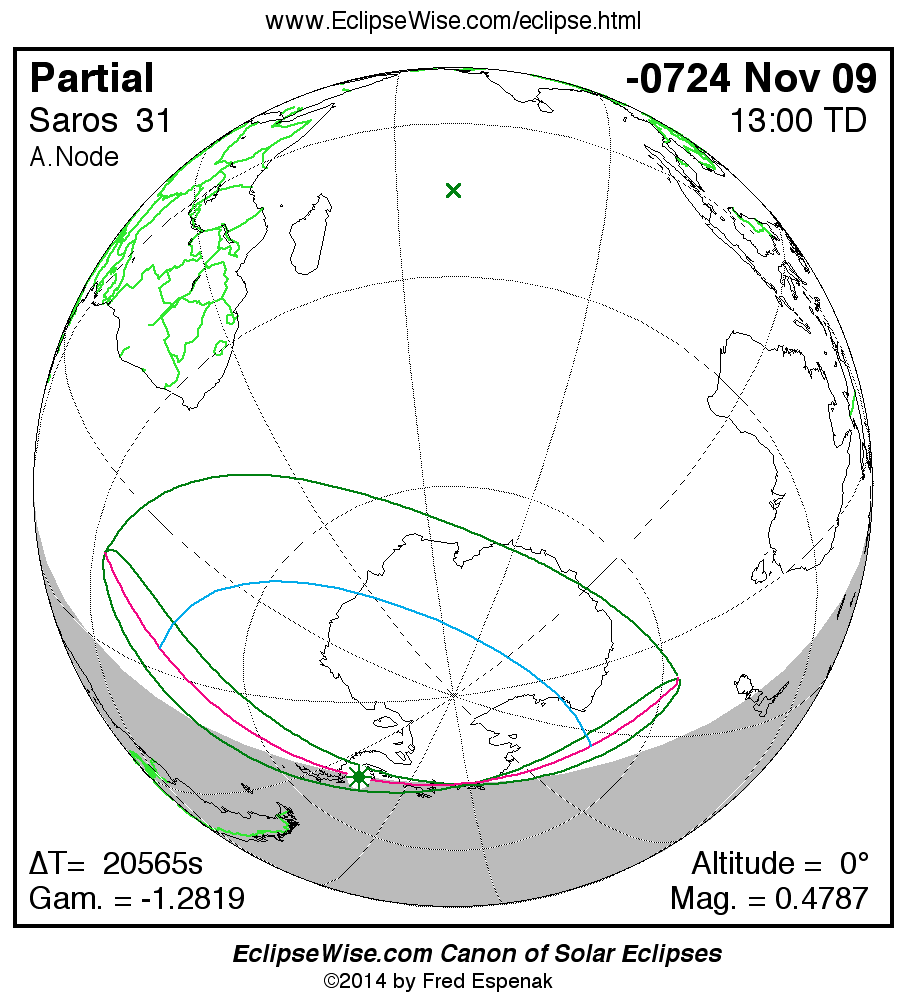 The instant of greatest eclipse takes place on -0724 Nov 09 at 13:00:17 TD (07:17:35 UT1).