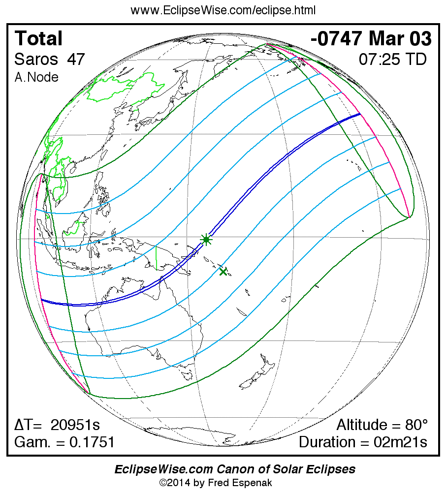 Total Solar Eclipse of -0747 Mar 03 (0748 Mar 03 BCE)