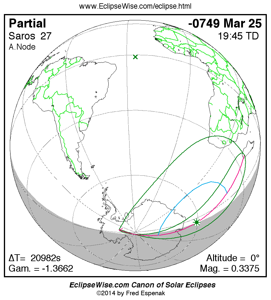 The instant of greatest eclipse takes place on -0749 Mar 25 at 19:45:08 TD (13:55:28 UT1).