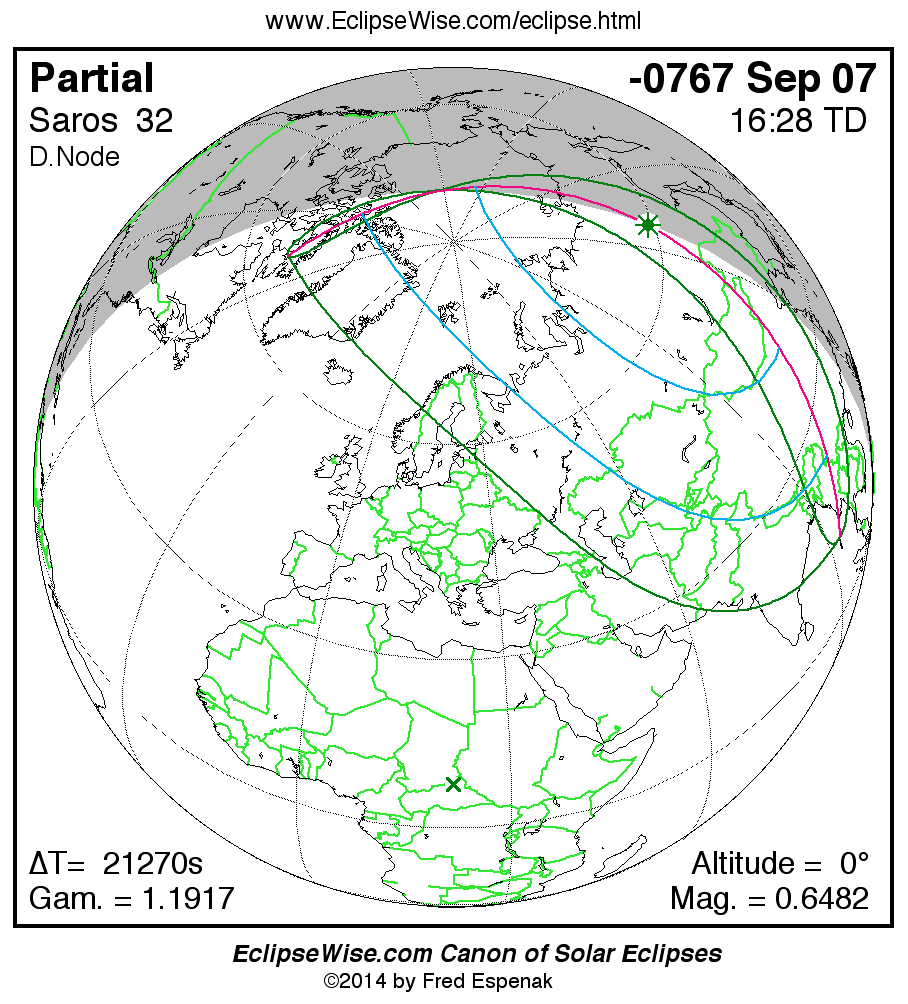 The instant of greatest eclipse takes place on -0767 Sep 07 at 16:28:07 TD (10:33:39 UT1).