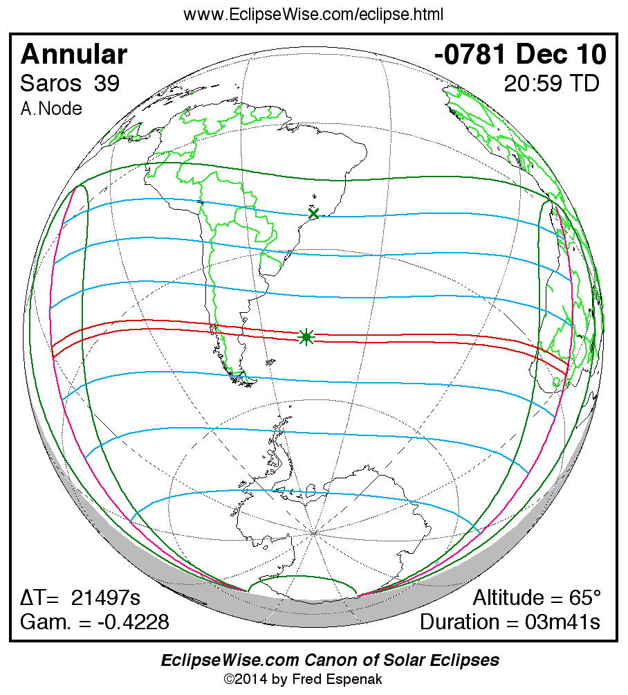 The instant of greatest eclipse takes place on -0781 Dec 10 at 20:59:05 TD (15:00:51 UT1).