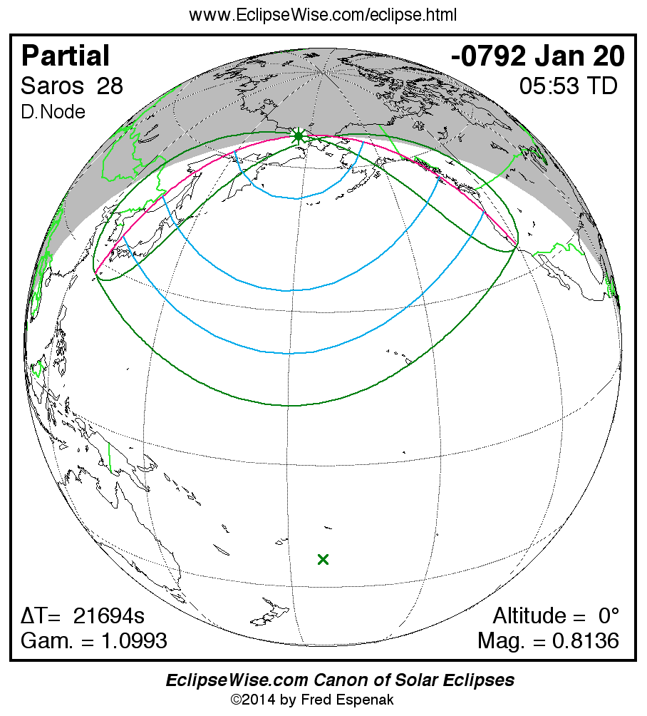 The instant of greatest eclipse takes place on -0792 Jan 21 at 05:52:53 TD (23:51:22 UT1).