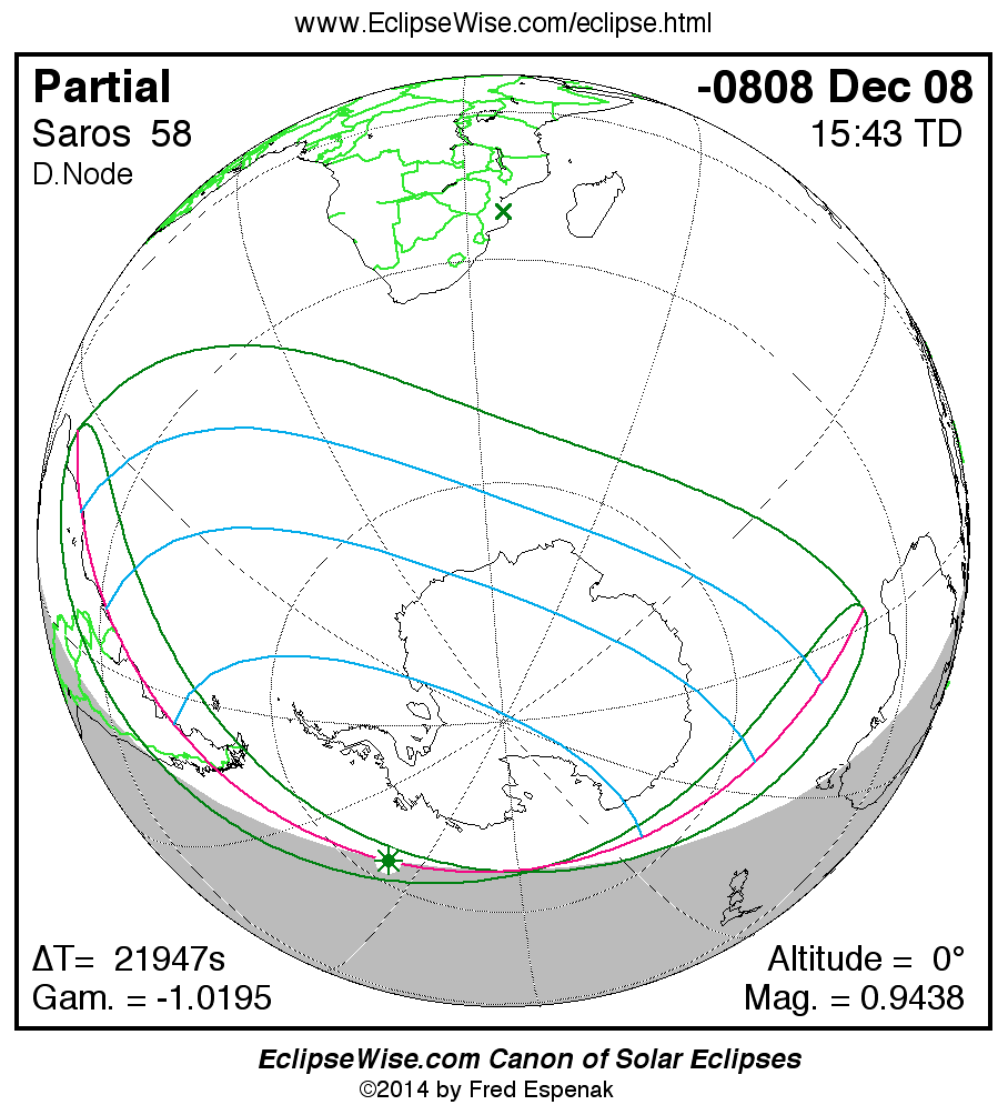 The instant of greatest eclipse takes place on -0808 Dec 08 at 15:43:25 TD (09:37:42 UT1).
