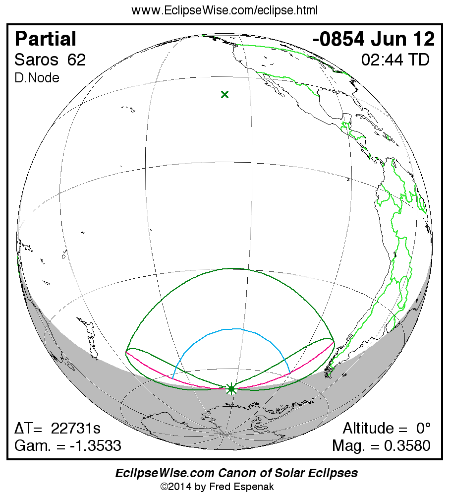 The instant of greatest eclipse takes place on -0854 Jun 13 at 02:44:23 TD (20:25:34 UT1).