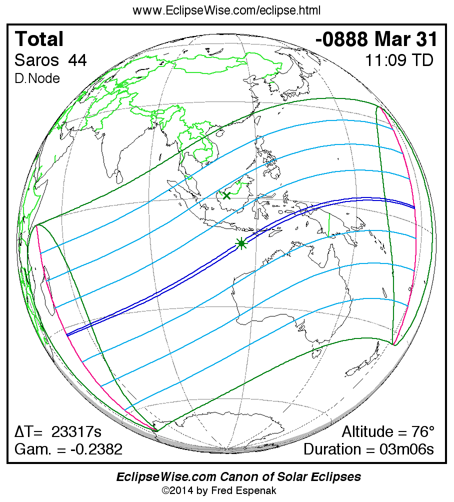 Total Solar Eclipse of -0888 Mar 31 (0889 Mar 31 BCE)