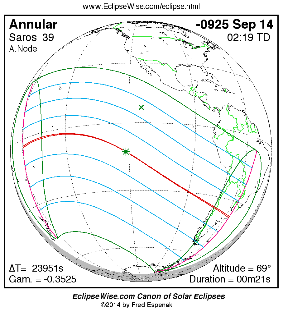 - Path Table: Annular Solar Eclipse of -0925 Sep 15 - coordinates of the central line and path limits