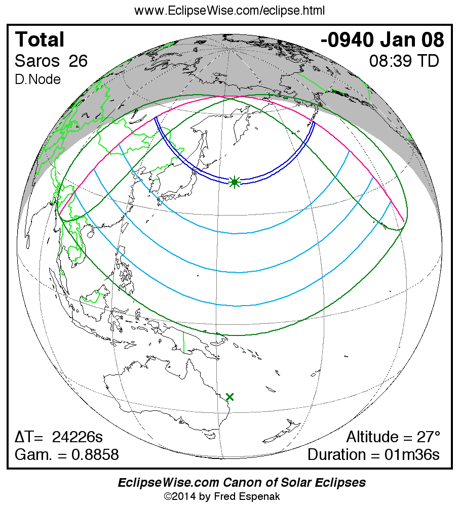 Total Solar Eclipse of -0940 Jan 08 (0941 Jan 08 BCE)