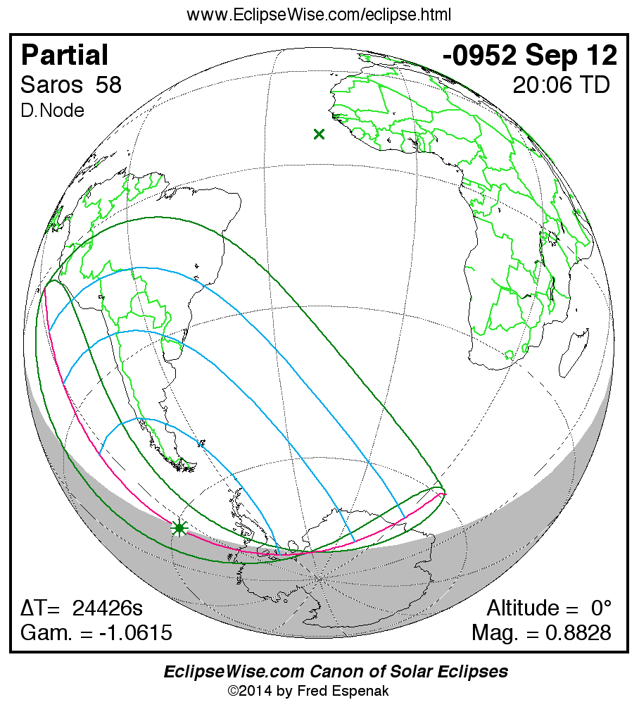 The instant of greatest eclipse takes place on -0952 Sep 12 at 20:05:50 TD (13:18:48 UT1).