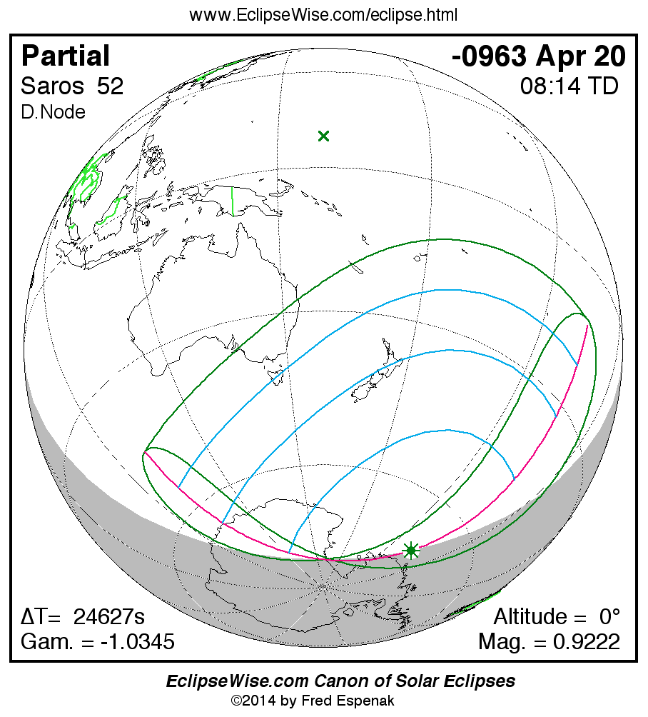The instant of greatest eclipse takes place on -0963 Apr 20 at 08:14:03 TD (01:23:39 UT1).