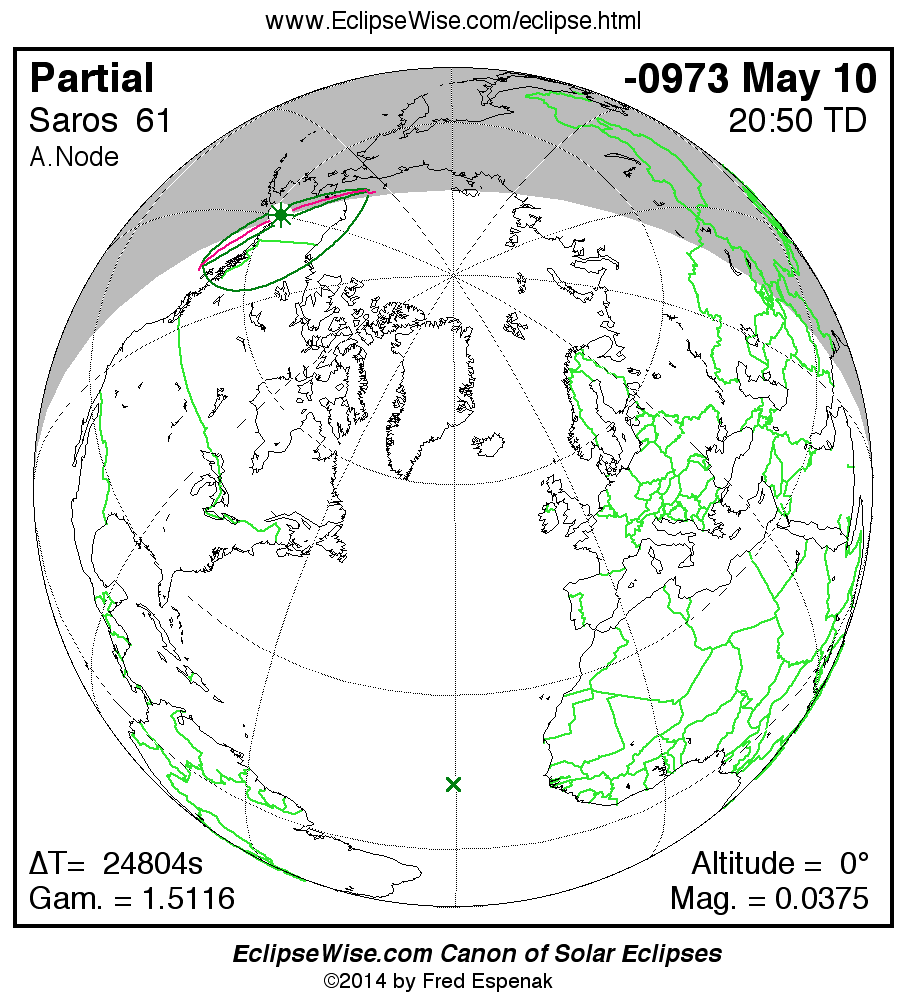 - Orthographic Map: Partial Solar Eclipse of -0973 May 10 - global map of eclipse visibility
