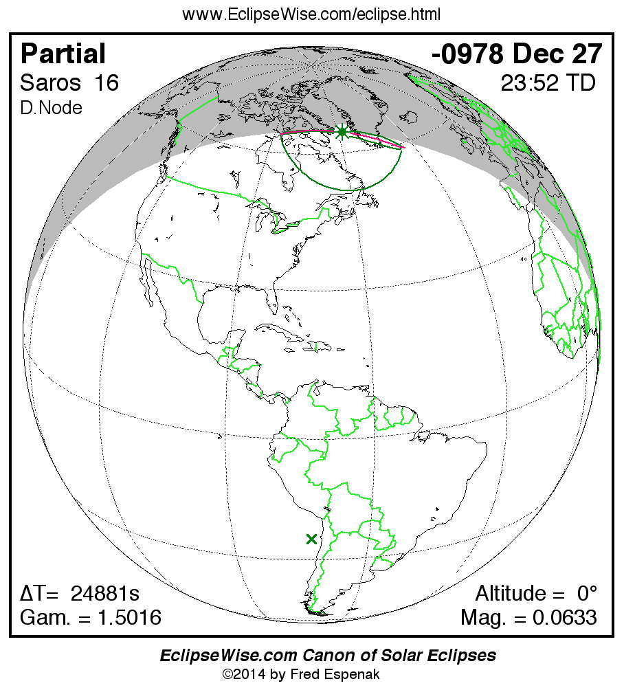 The instant of greatest eclipse takes place on -0978 Dec 27 at 23:52:14 TD (16:57:36 UT1).