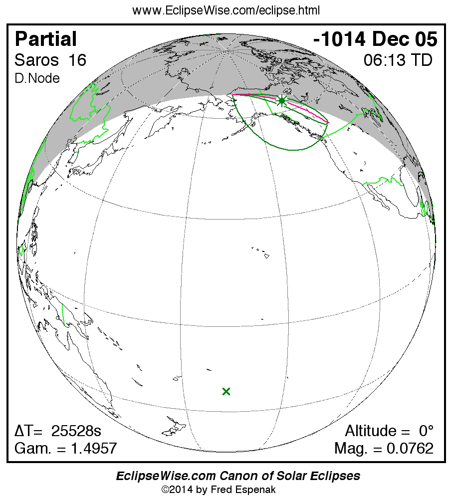The instant of greatest eclipse takes place on -1014 Dec 06 at 06:13:05 TD (23:07:40 UT1).