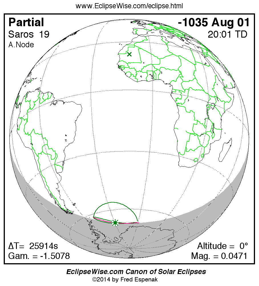 - Orthographic Map: Partial Solar Eclipse of -1035 Aug 01 - global map of eclipse visibility