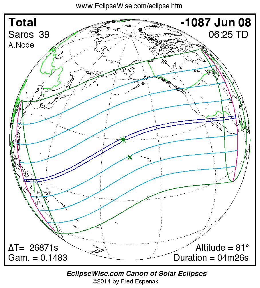 - Path Table: Total Solar Eclipse of -1087 Jun 09 - coordinates of the central line and path limits