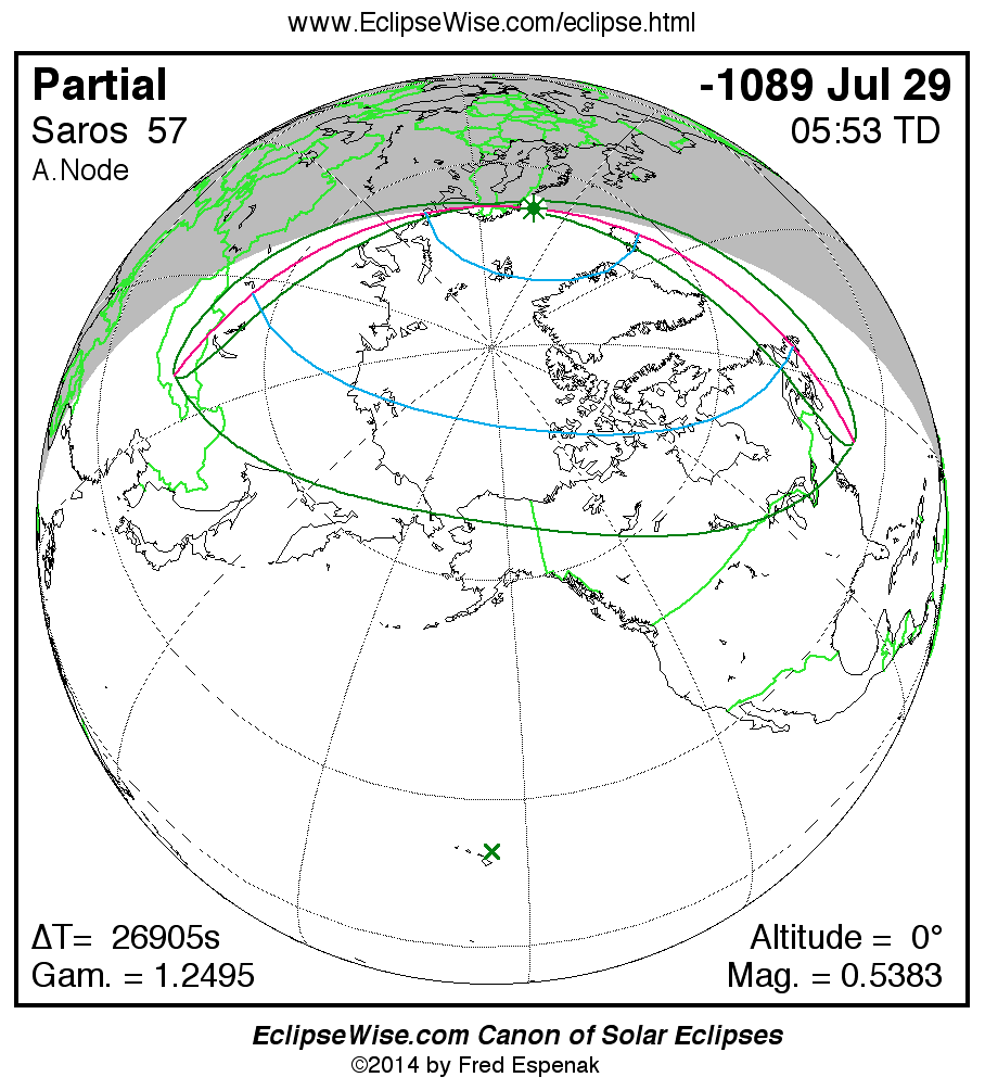 The instant of greatest eclipse takes place on -1089 Jul 30 at 05:52:42 TD (22:24:20 UT1).