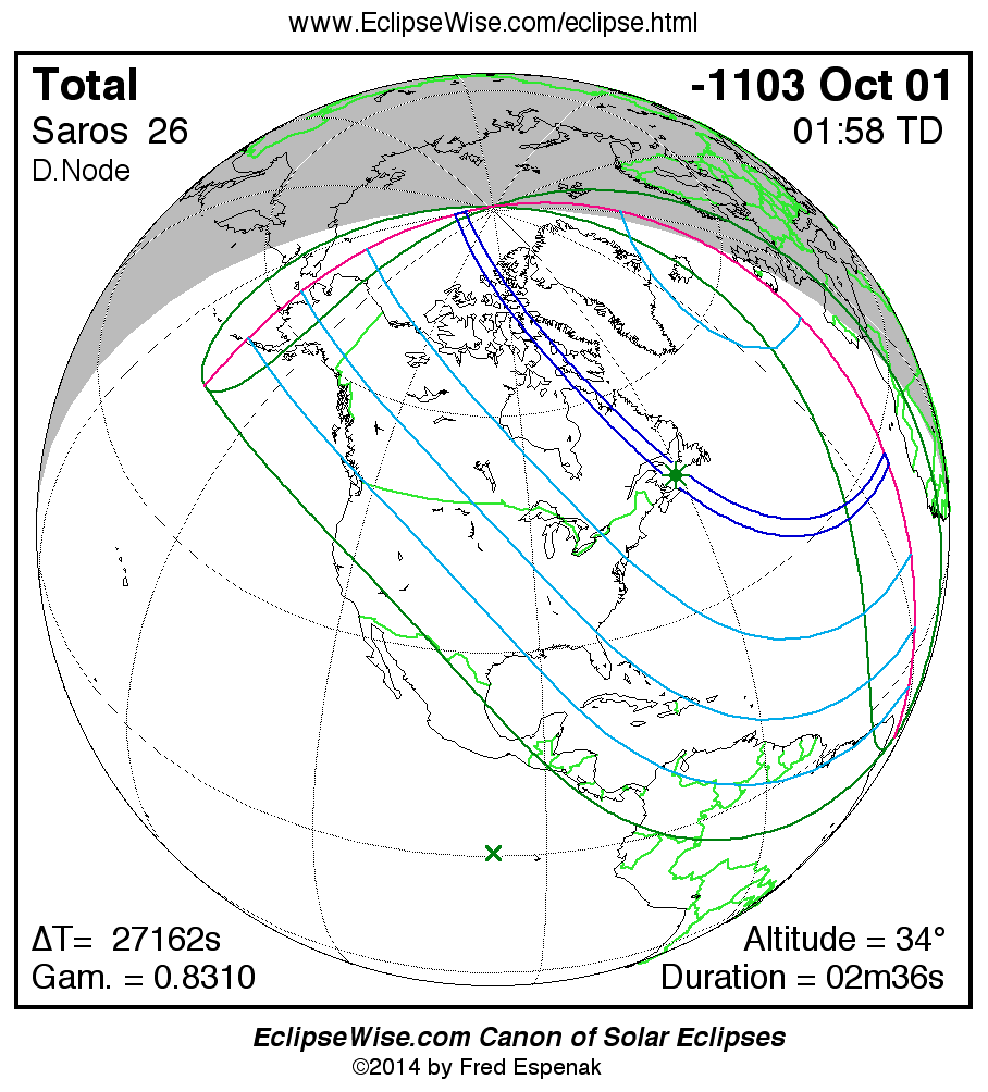 Total Solar Eclipse of -1103 Oct 02 (1104 Oct 02 BCE)