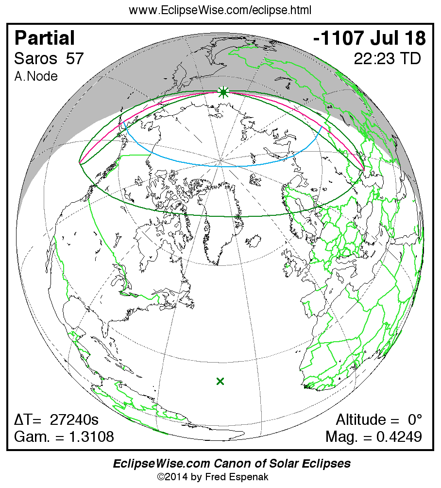 The instant of greatest eclipse takes place on -1107 Jul 18 at 22:22:31 TD (14:48:34 UT1).
