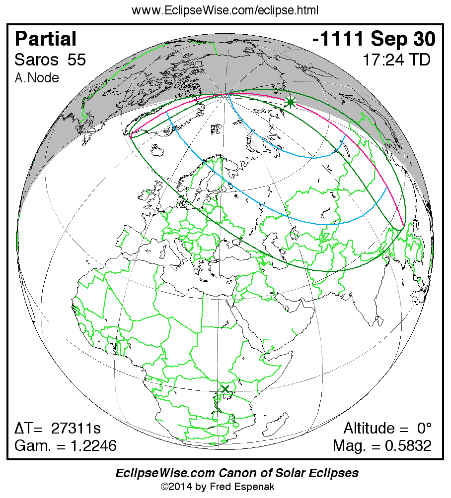 The instant of greatest eclipse takes place on -1111 Sep 30 at 17:23:31 TD (09:48:23 UT1).