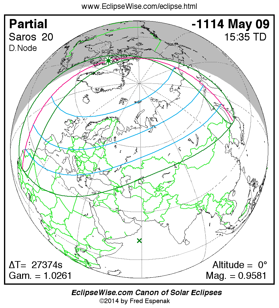 The instant of greatest eclipse takes place on -1114 May 09 at 15:35:09 TD (07:58:58 UT1).