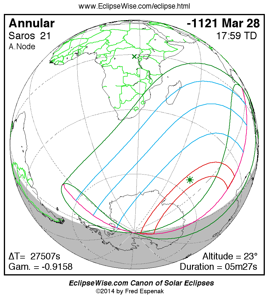 Annular Solar Eclipse of -1121 Mar 28