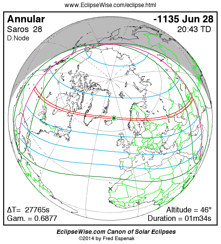 Annular Solar Eclipse of -1135 Jun 28