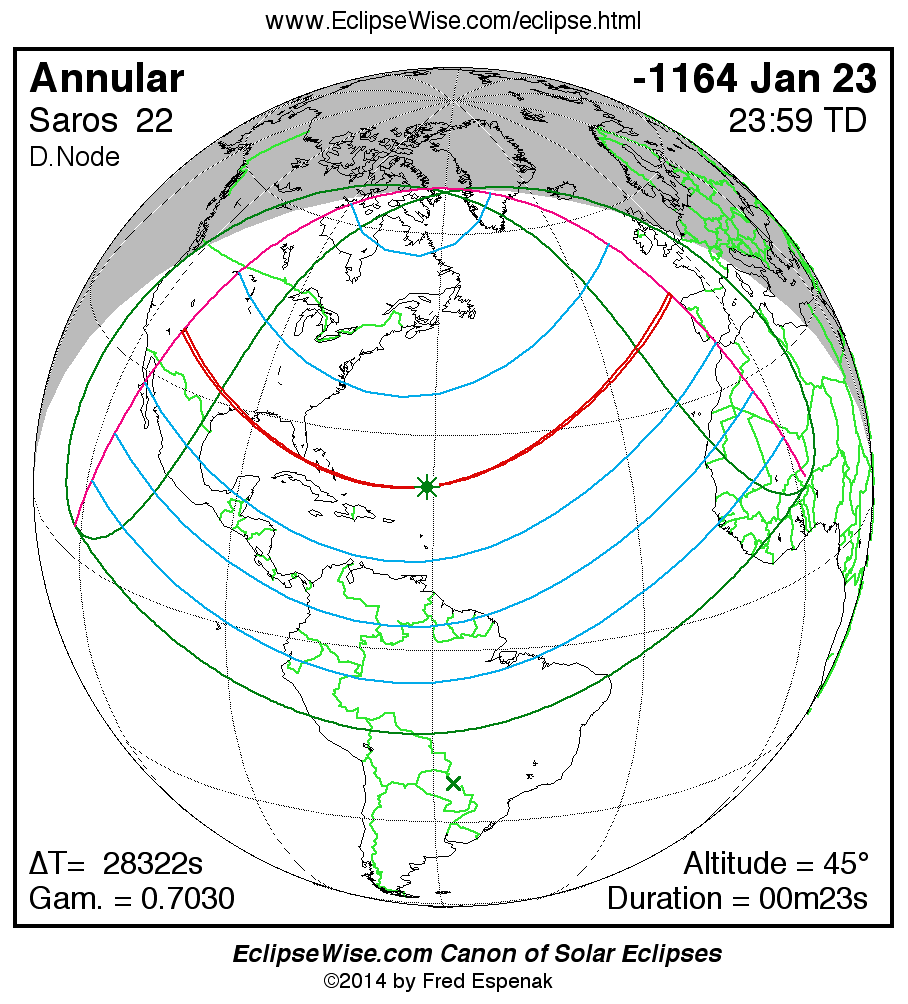- Circumstances Table: Annular Solar Eclipse of -1164 Jan 23 - eclipse times for hundreds of cities