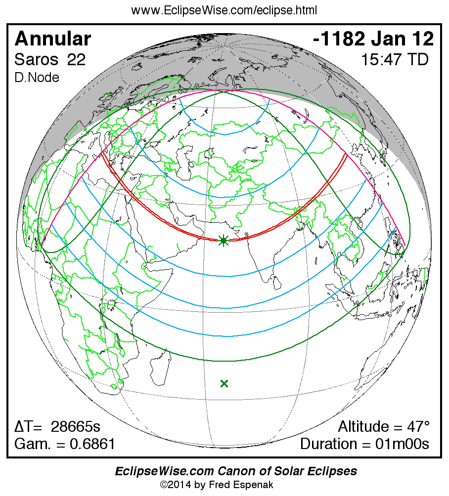 Annular Solar Eclipse of -1182 Jan 12