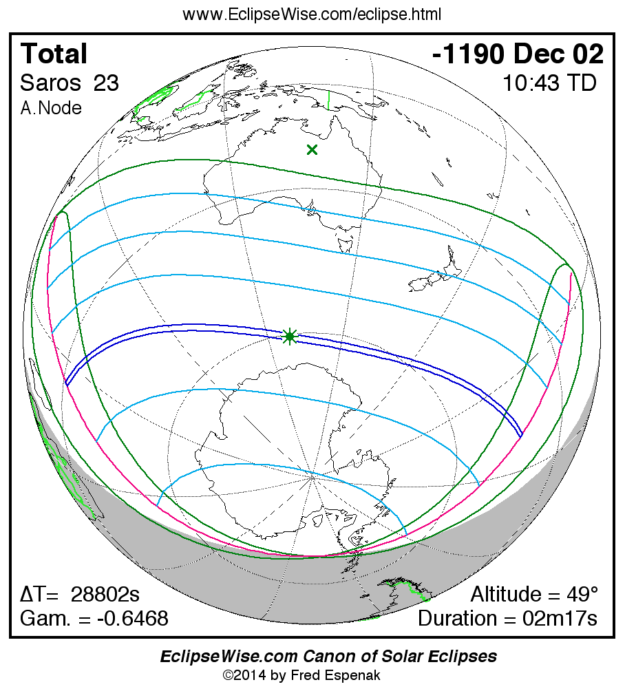 Total Solar Eclipse of -1190 Dec 02 (1191 Dec 02 BCE)