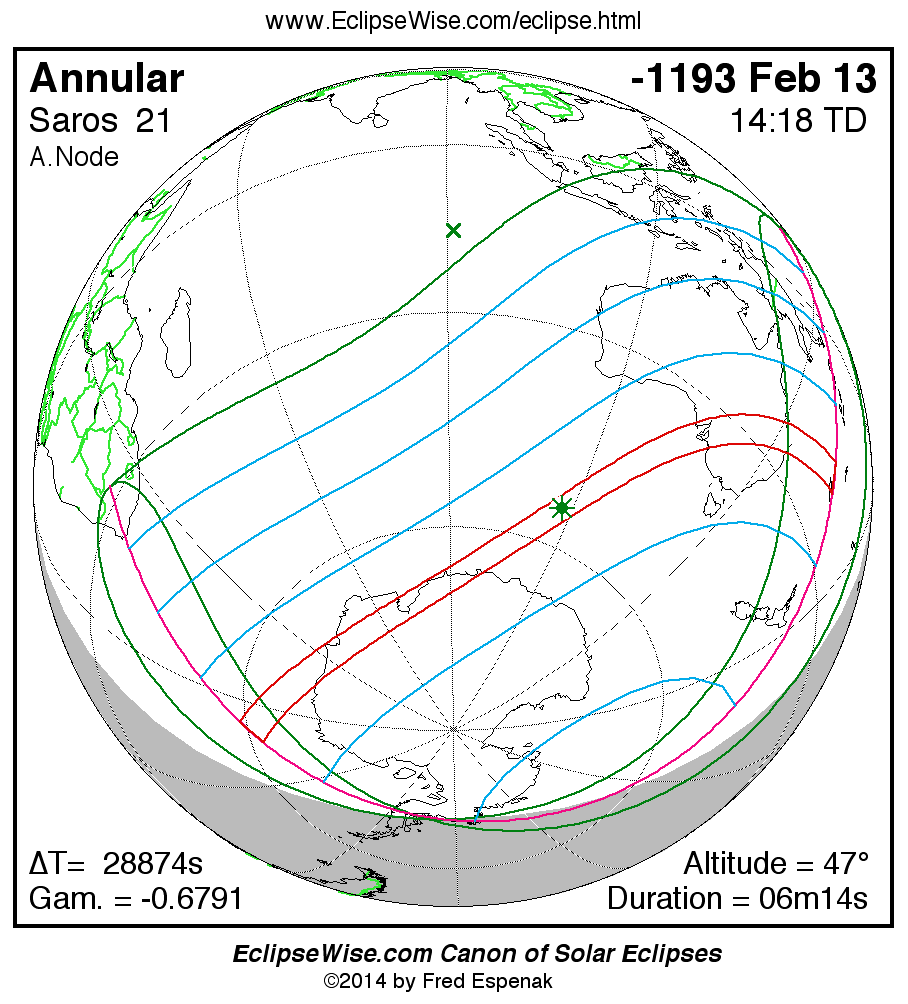 - Orthographic Map: Annular Solar Eclipse of -1193 Feb 13 - global map of eclipse visibility