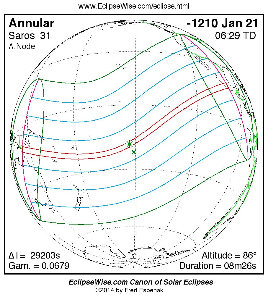 Annular Solar Eclipse of -1210 Jan 22 (1211 Jan 22 BCE)