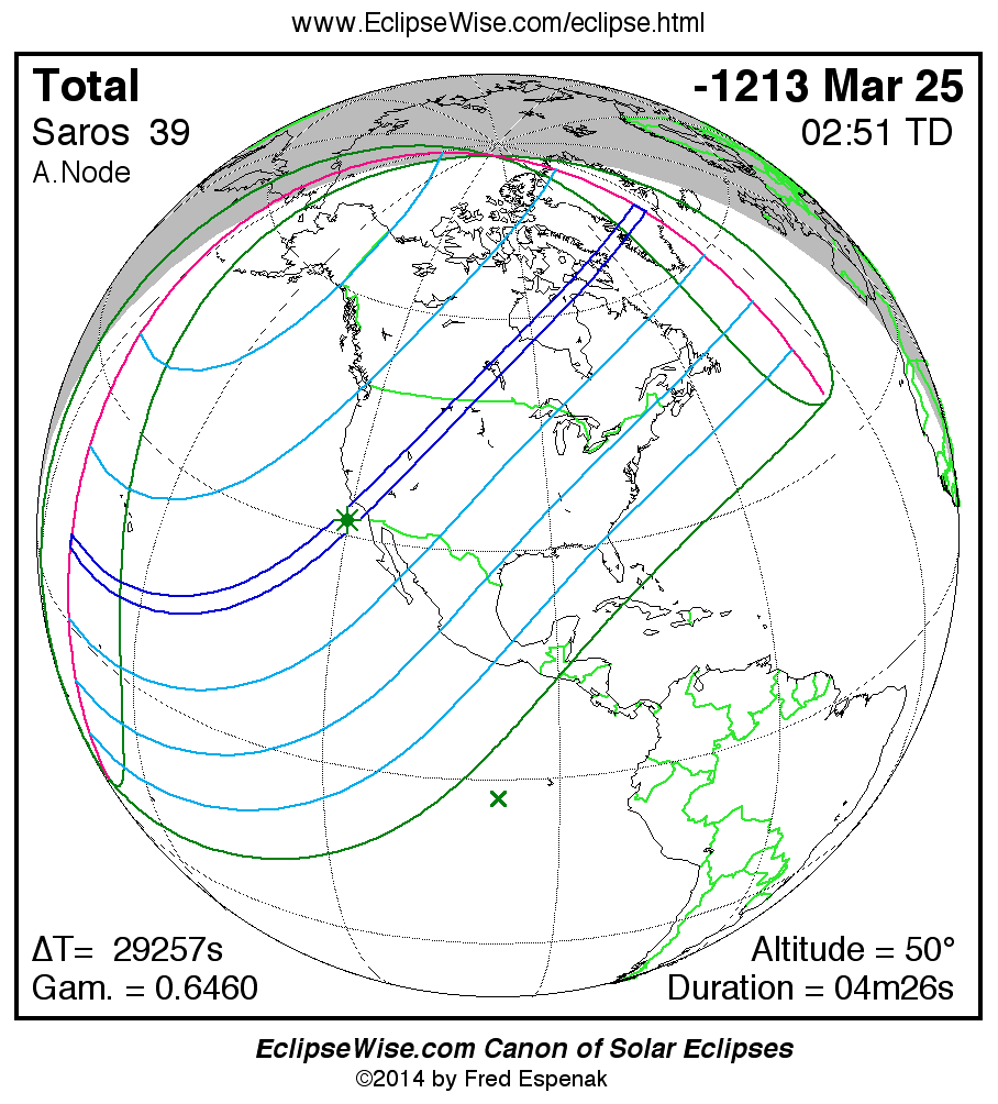 Total Solar Eclipse of -1213 Mar 26 (1214 Mar 26 BCE)