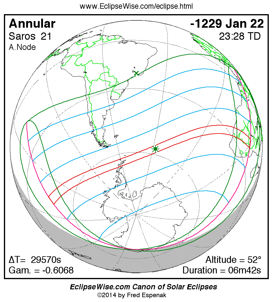 - Orthographic Map: Annular Solar Eclipse of -1229 Jan 22 - global map of eclipse visibility