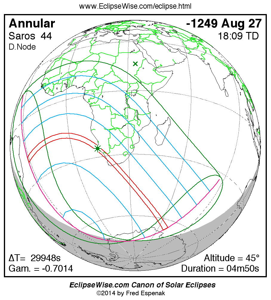 Annular Solar Eclipse of -1249 Aug 27 (1250 Aug 27 BCE)