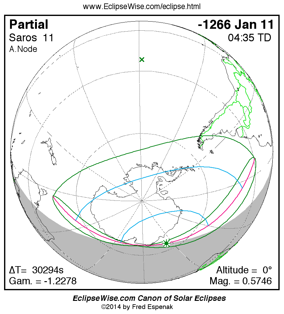 The instant of greatest eclipse takes place on -1266 Jan 12 at 04:34:41 TD (20:09:51 UT1).