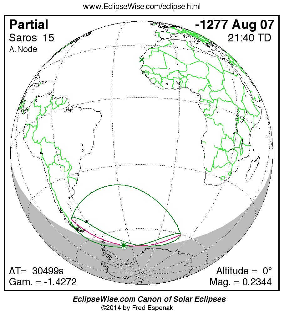 The instant of greatest eclipse takes place on -1277 Aug 07 at 21:39:37 TD (13:11:22 UT1).