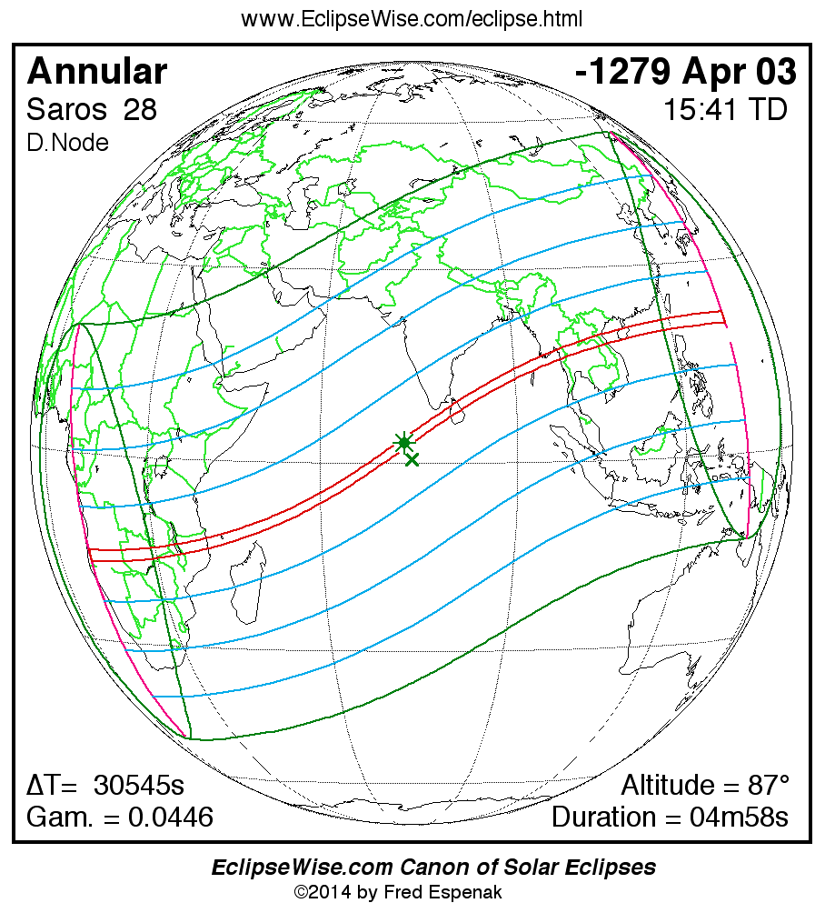 Annular Solar Eclipse of -1279 Apr 03 (1280 Apr 03 BCE)