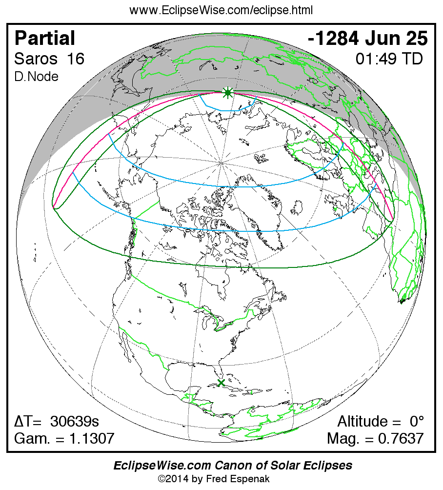 The instant of greatest eclipse takes place on -1284 Jun 26 at 01:49:12 TD (17:18:37 UT1).