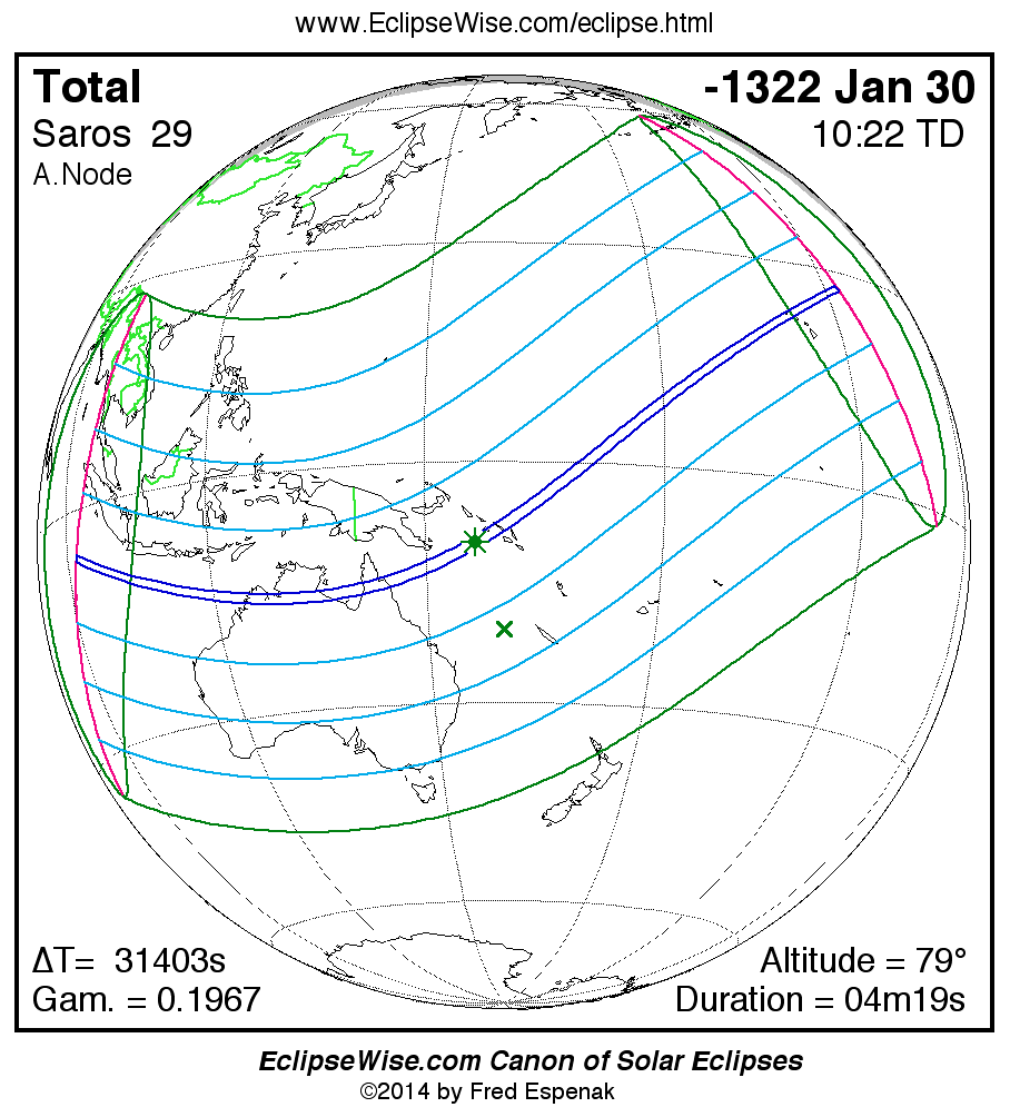 - Google Map: Total Solar Eclipse of -1322 Jan 30 - interactive map of the eclipse path