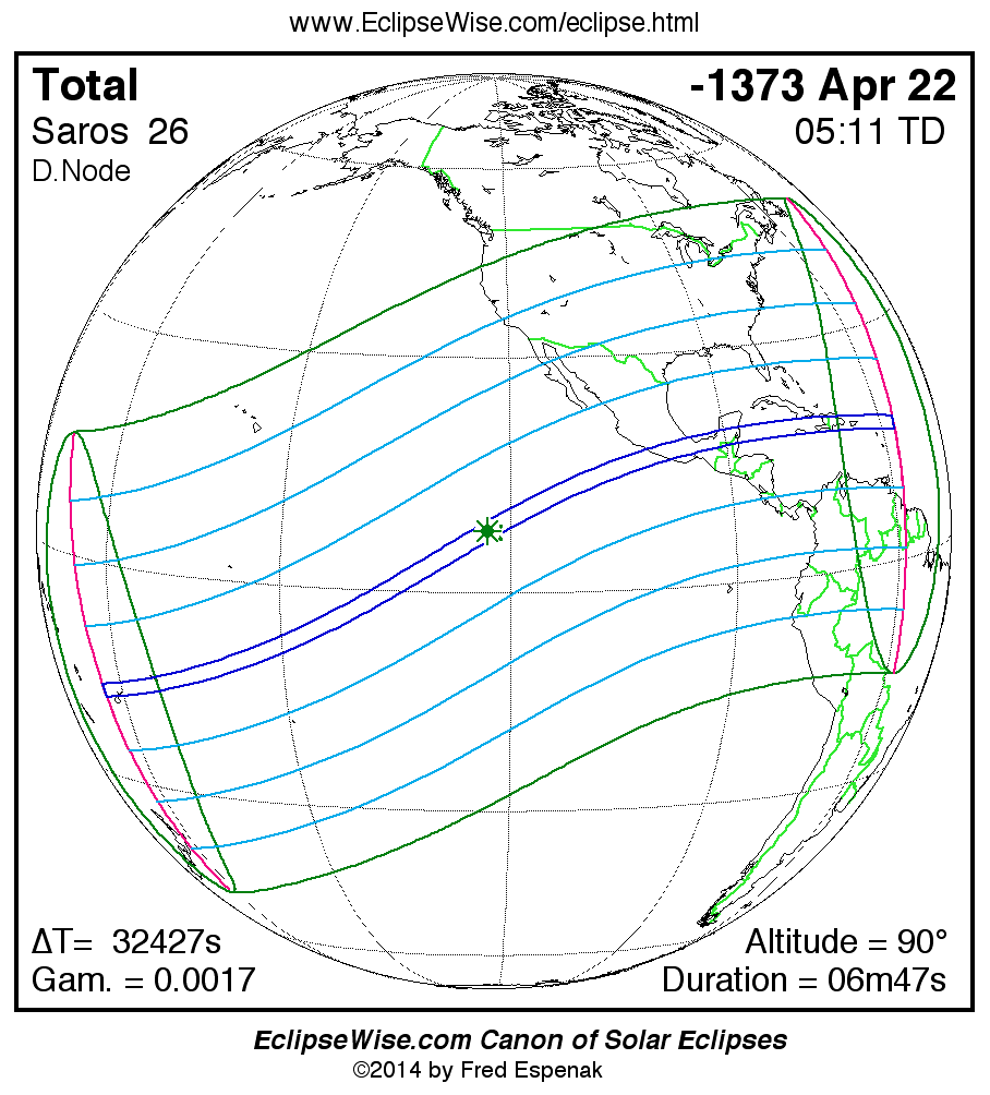 - Path Table: Total Solar Eclipse of -1373 Apr 23 - coordinates of the central line and path limits
