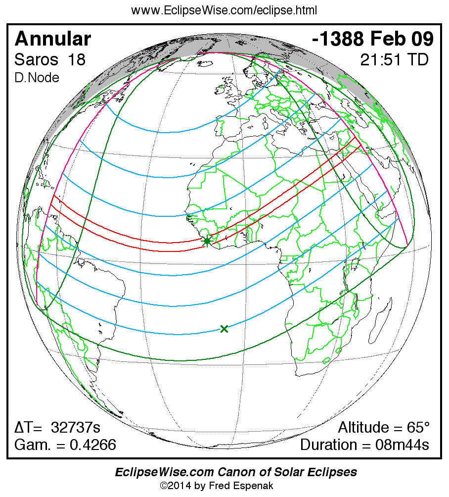 Annular Solar Eclipse of -1388 Feb 09 (1389 Feb 09 BCE)