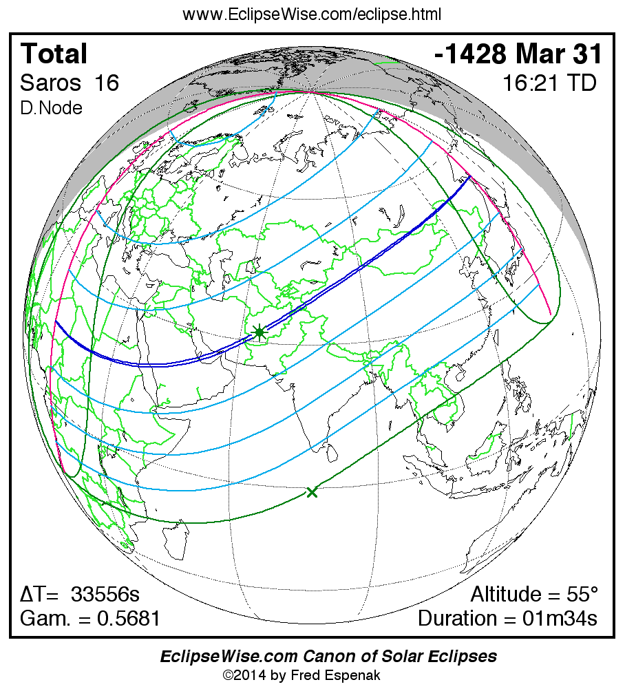 Total Solar Eclipse of -1428 Mar 31 (1429 Mar 31 BCE)