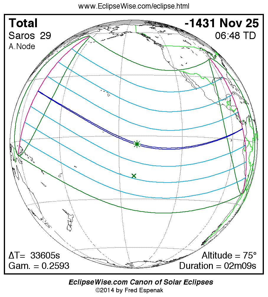 Total Solar Eclipse of -1431 Nov 26 (1432 Nov 26 BCE)