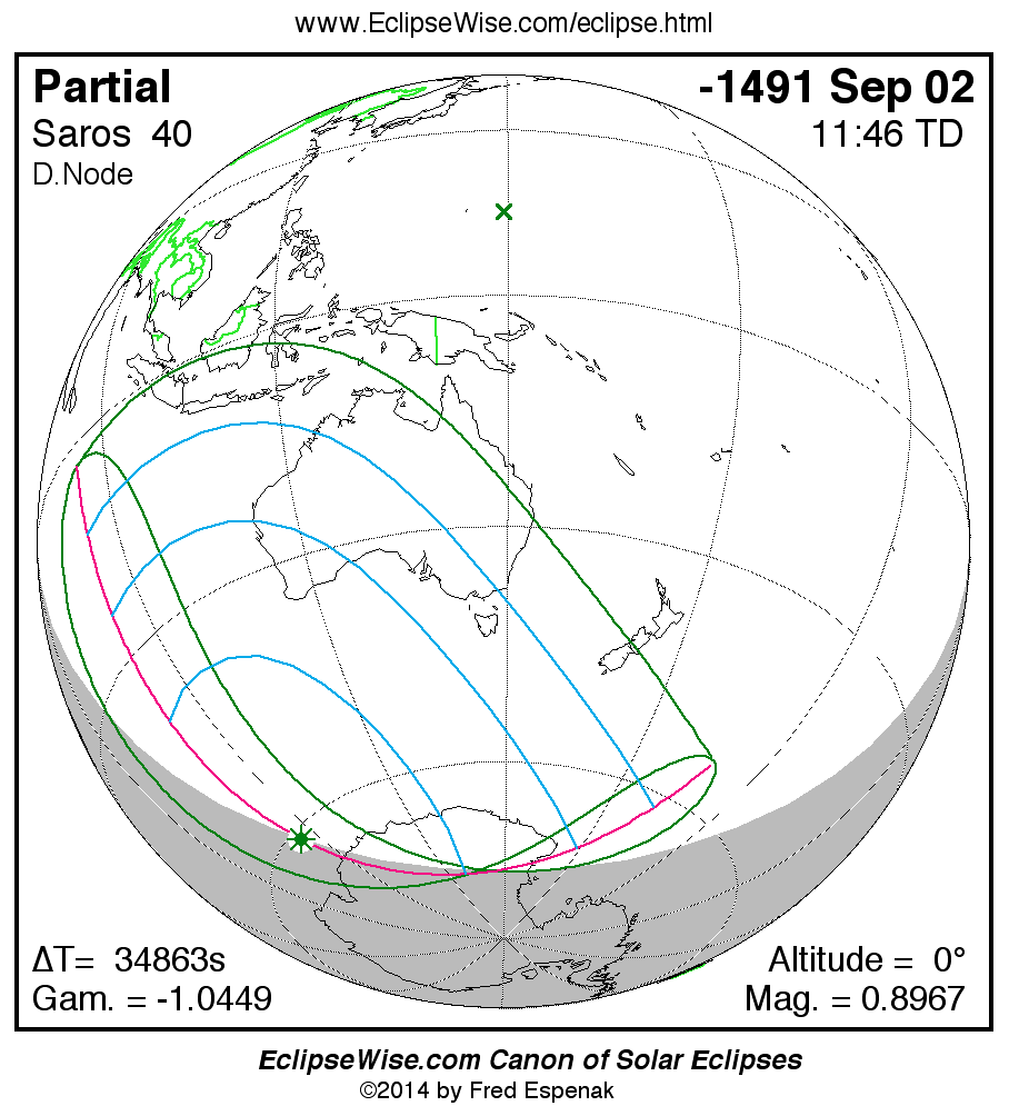 The instant of greatest eclipse takes place on -1491 Sep 02 at 11:45:55 TD (02:04:57 UT1).