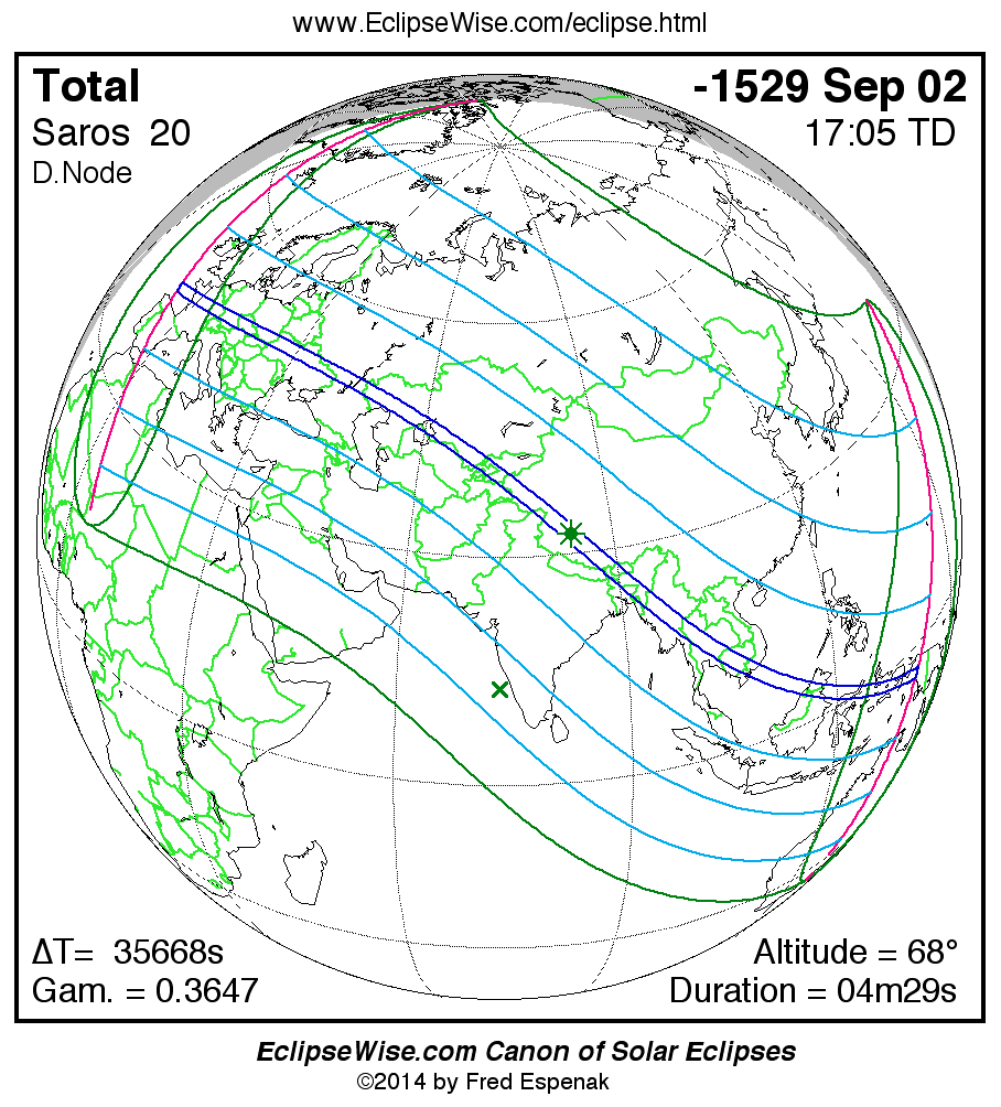 - Path Table: Total Solar Eclipse of -1529 Sep 02 - coordinates of the central line and path limits