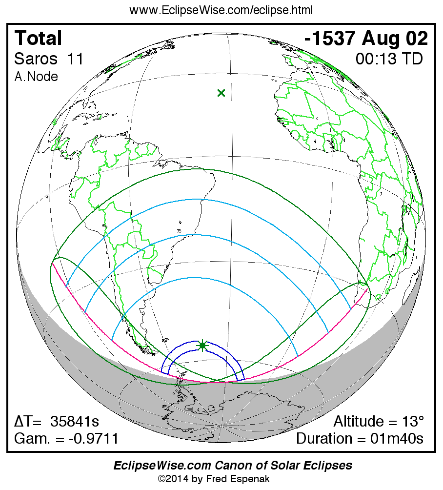 The instant of greatest eclipse takes place on -1537 Aug 03 at 00:13:22 TD (14:16:05 UT1).