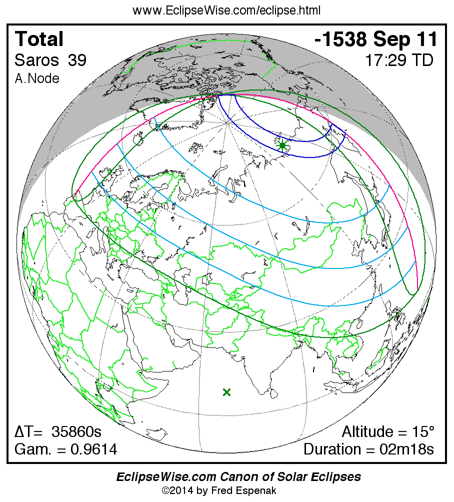 Total Solar Eclipse of -1538 Sep 11 (1539 Sep 11 BCE)
