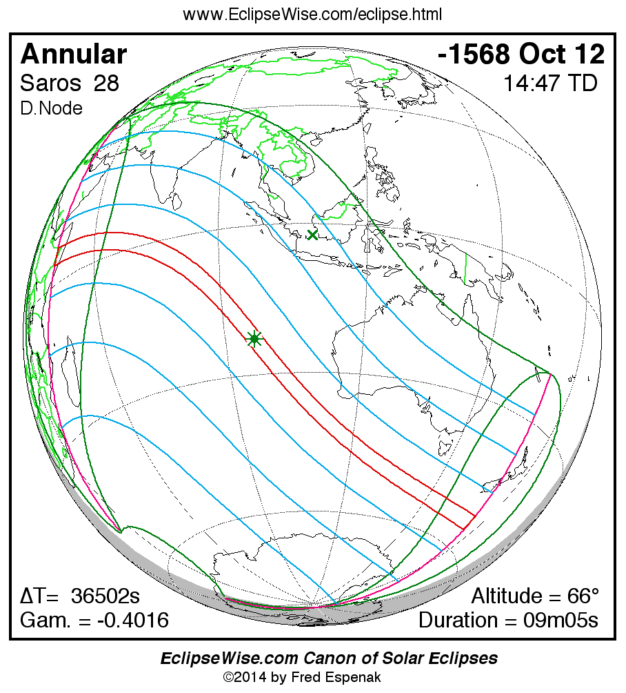 - Circumstances Table: Annular Solar Eclipse of -1568 Oct 12 - eclipse times for hundreds of cities