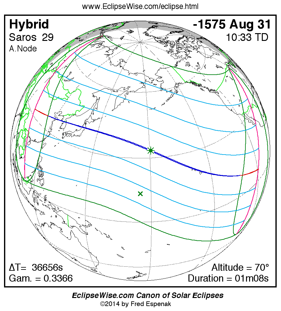 - Google Map: Hybrid Solar Eclipse of -1575 Aug 31 - interactive map of the eclipse path