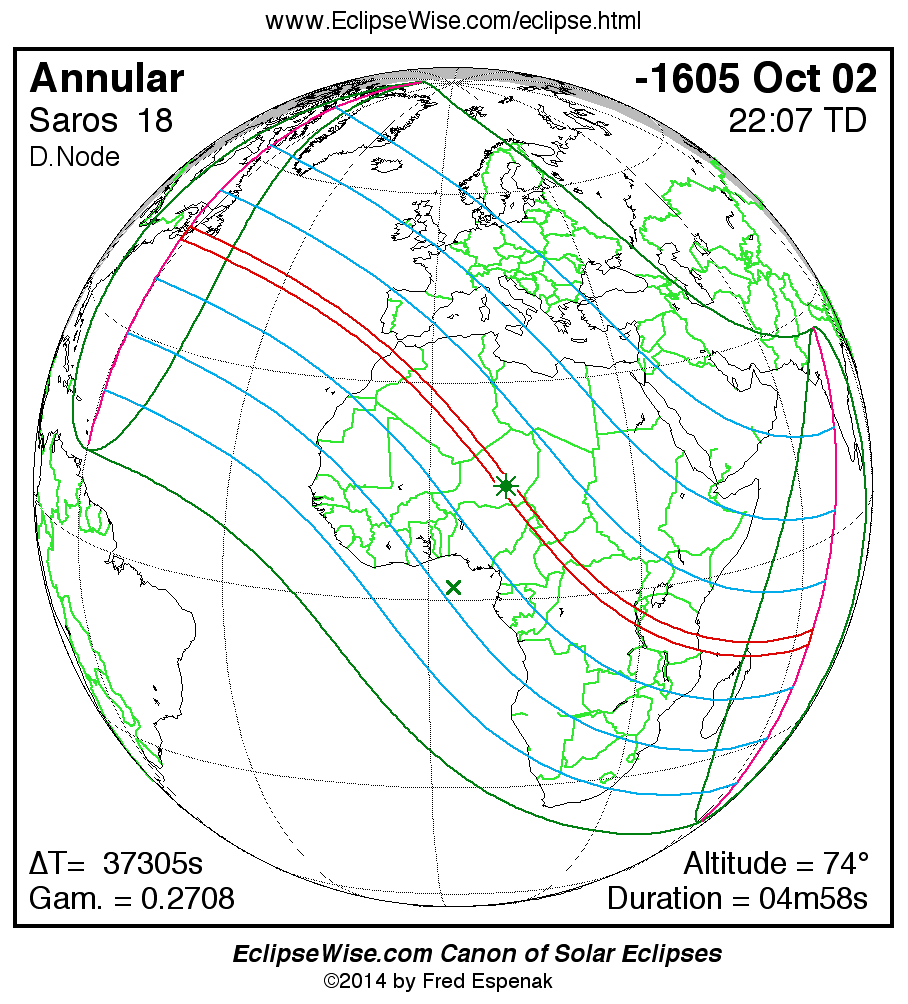 Annular Solar Eclipse of -1605 Oct 02