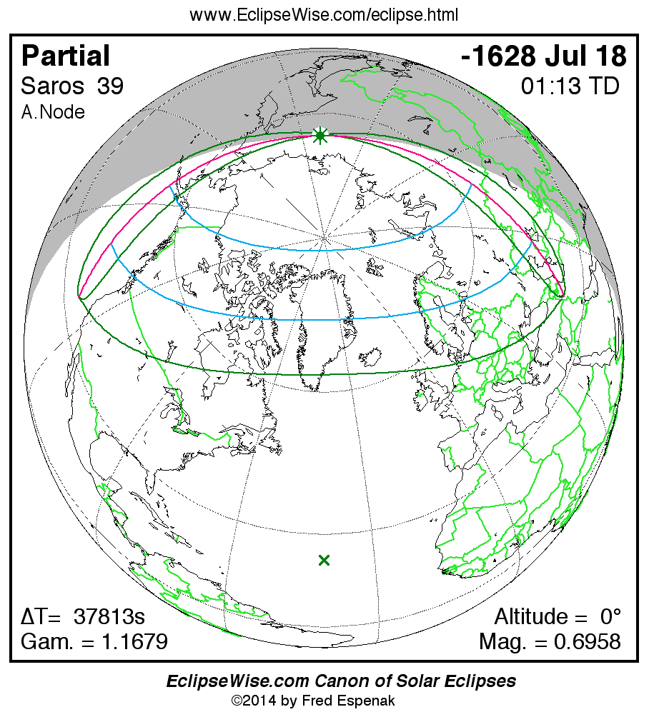 The instant of greatest eclipse takes place on -1628 Jul 19 at 01:12:30 TD (14:42:22 UT1).